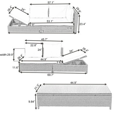 Sofa without Arm: 69.7 x 29.9 x 23.4inch (LXWXH).