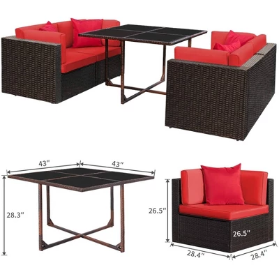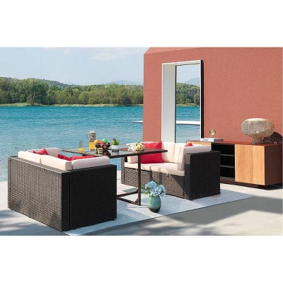 5pc Outdoor Conversation Set With Wicker Sectional Sofa & Tempered Glass Table – Devoko