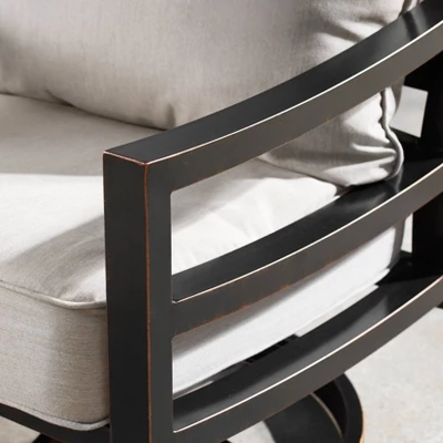 Whether your outdoor retreat is located in the mountains, on the coast, or somewhere in between, this fire table set will extend your evenings with friends and family around the fire. With this addition you can enhance your outdoor setting with even more ambiance and relaxation. This fire table set comes with an Outdoor Aluminum 34 in. Round Fire Table Set with Four Deep Seating Swivel Rocking Chairs, Fire Beads, Lid, Propane Tank Cover and Table Fabric Cover. The dimensions for the fire table are: 34″ L x 34″ W x 24.5″ H, 55 lbs. Each chair dimensions are: 28.3″ L x 33.8″ W x 34.2″ H, 27.3 lbs. The chair seat is 12.6″ H from the seat to the floor.