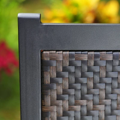 This chair offers comfy feeling when it serves as a dining chair or a conversation seat from Captiva Designs.The seat and back of the dining chair is made of PE rattan.A cushion is placed on the seat.You will not feel tired or uneasy if you sit on it for a long time.Steel frame and powder coating offer the stable and durable applying.