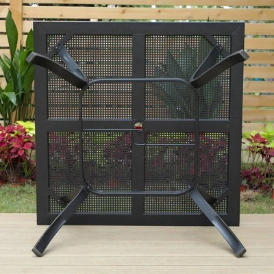 This black steel table offers comfy feeling when it serves as a dining table from Captiva Designs.It accommodates 4 seats around.The steel metal is powder-coated and strong enough for a long time serving.Classic pattern design gives elegant and beautiful look.It is a perfect choice for outdoor and indoor applying.