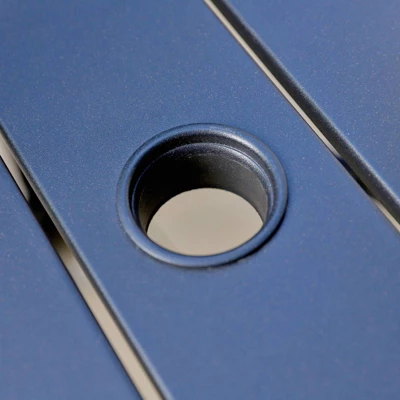 - Stylish modern metal slat design makes the table and chairs sturdy and polished elegantly, easy to assemble. 1.57″ umbrella hole fits most umbrellas;