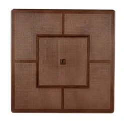 - The dimensions for the fire table are: 44″ L x 44″ W x 24.5″ H, 71.5 lbs. Each chair dimensions are: 28.4″ L x 33″ W x 37.8″ H, 29 lbs. The chair seat is 12.6″ H from the seat to the floor