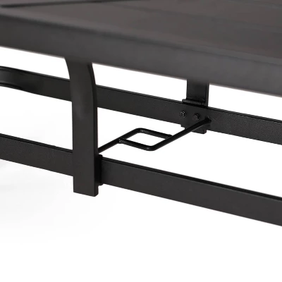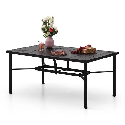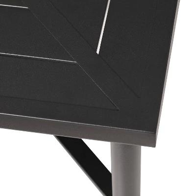 - Modern Elegance: The sleek black table with its stylish geometric and intricately stamped tabletop introduces a contemporary and elegant design to your outdoor space.