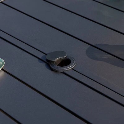 This black steel table offers comfy feeling when it serves as a dining table from Captiva Designs.It accommodates 6 seats around.The steel metal is powder-coated and strong enough for a long time serving.There is a 2.6″ hole for the umbrella.Classic pattern design gives elegant and beautiful look.It is a perfect choice for outdoor and indoor applying.