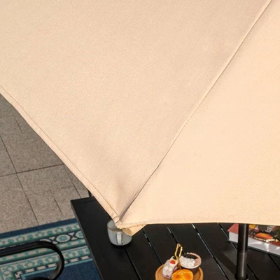 - Rust and Water Resistant: The entire set, including the table, chairs, and umbrella, is designed to be rust and water-resistant, promising long-lasting use and minimal maintenance.