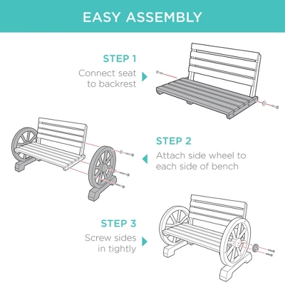 - EASY ASSEMBLYSTEP 1Connect seat to backrestSTEP 2Attach side wheel to each side of benchSTEP 3Screw sides in tightly