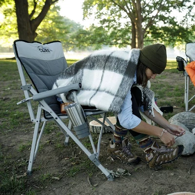 Relax with the CORE Padded Hard Arm Chair. This cozy chair features a sturdy steel frame with a 300lb weight capacity, and plush quilted seat made from 600D brushed polyester. Padded hard arms provide extra support and comfort. The collapsible cup holder and built-in gear pocket keep everything organized and close by. Perfect for camping, sporting events and backyard hangouts, the CORE Padded Hard Arm Chair with quilted seat and sturdy frame will keep you comfortable during any outing.