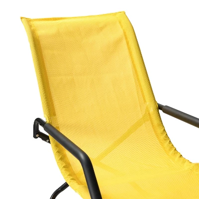 The essential component of your outdoor ensembles. There is nothing greater than enjoying the brilliant sunshine and refreshing breeze with a glass of juice outside the room on lazy days. Bear your needs in mind, this outdoor recline chaise lounge set including two single chairs is here for help. The eye-catching cross base provides perfect support for your whole body with durable textured Teslin fabric attached in a sturdy black metal frame for long-lasting use. Being easy to set up and takedown, it also features a rocking function that brings you gaming pleasure while the soft wrap on the armrest adds more comfort. Its foldable character can save your space at a maximum level and it is easy to take out, perfect for the poolside, beach, yard or even home as you want. Just sit down or lie in this chaise lounge chair and let your worries wash away as you enjoy the leisure time outdoors.Item Size: 23″Wx61″Dx35″HSeat size: 20″Wx39″Dx18.5″H