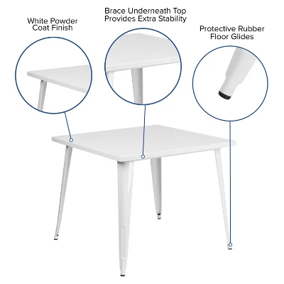 Create a vibrant, energetic dining space with this colorful industrial style black metal table. This lively table will add a retro-modern look to your home or business. Pair this table with like colored metal chairs for a uniform look or mix things up by adding different colored chairs. A thick brace underneath the top adds extra stability. The legs have protective rubber floor glides that prevent damage to flooring. This all-weather table is great for indoor and outdoor settings. For longevity, care should be taken to protect from long periods of wet weather. Great for both commercial and residential spaces, the decorating possibilities for this table are only limited by your imagination!