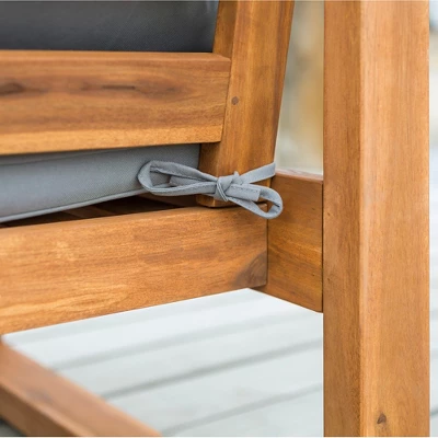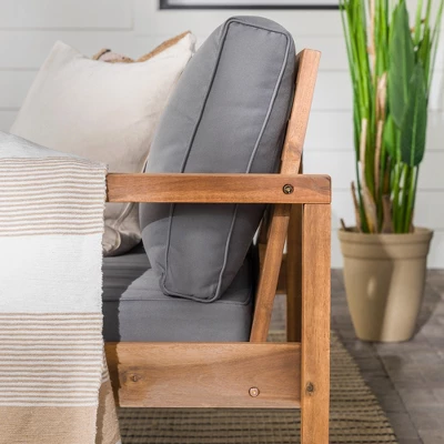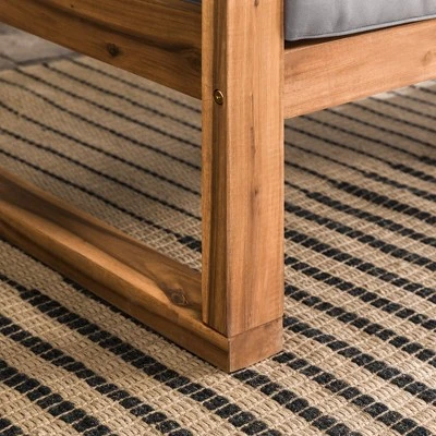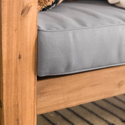 Cozy up on a warm summer night with this outdoor open side love seat. Featuring beautiful, plush cushions and durable yet stylish acacia wood, this piece is sure to please, as it’s both comfortable and fashionable. This loveseat has a simple, yet classic and traditional design, that’s also updated for a modern and contemporary feel. Make it the center piece of your backyard and pair it with an outdoor side table, for the ultimate relaxing getaway in your yard.