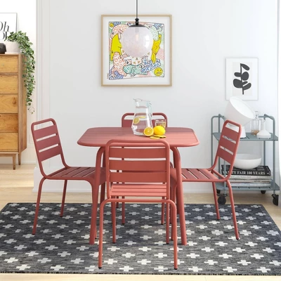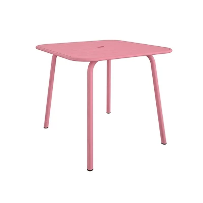Use this June Dining Table in the Poolside Gossip Collection by Novogratz for all of your entertaining needs. June is an entertainer that loves having friends over for a game, chat, or some gossip. Ideal for both indoor and outdoor use, this table is great for hosting game night with friends and family or dining al fresco in the sunshine and fresh air. No matter the occasion, June is here to serve all of your hosting needs! This trendy dining table will breathe new life into all backyard or home décor aesthetic. For added convenience, this table was made with a built-in umbrella hole (umbrella not included) to give you the option of shade cover from the blistering sun on a hot day. Constructed using durable powder coated steel and weather resistant materials helps this table withstand all outdoor elements and allows for a 250lbs. weight capacity rating. With some assembly required and tools provided, June is seamless to put together and virtually ready to use right out of the box. Create your dream dining arrangement for entertaining and everyday use!