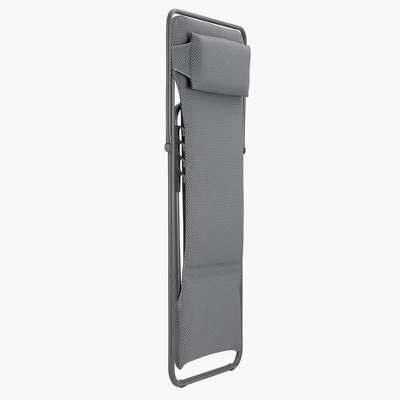 Ensure exceptional comfort while relaxing in your backyard, camping, or watching your favorite sporting event with the Lafuma Maxi Transat Plus Sling Chair. With a wide frame, lack of crossbar at the front of the seat, and BeComfort padding, this chair will satisfyingly fulfill all your wants. Featuring 4 position safety rack adjusters, this supportive chair allows you to customize the backrest tilt to your ideal comfort level while the extra width ensures ample seating space. The sling surface is made from Batyline quick-drying mesh fabric that’s resistant to weather and tearing, providing a cradling, supportive surface for your comfort. With protective foot glides and reinforced skids, this chair offers maximum stability indoors or outdoors. For even more comfort, this low-seated, tall back chair includes a removable canvas and an adjustable foam headrest. The ultra-compact, folding design makes the chair easy to move and store away when it’s not in use. Be prepared for ultimate relaxation with the Maxi Transat Plus Sling Chair from Lafuma.