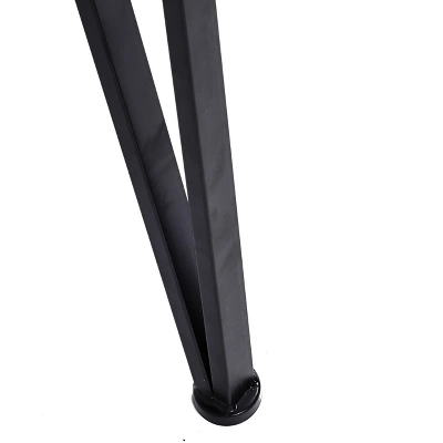 - Table features three hairpin iron legs in a matte black finish
