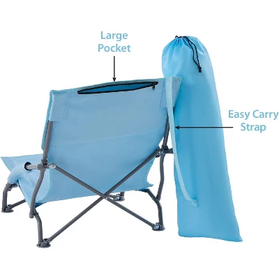 - SLING SEAT : The Sling shaped seat is extremely comfortable and because this chair rests lower to the ground it is perfect for toes in the sand beach day.