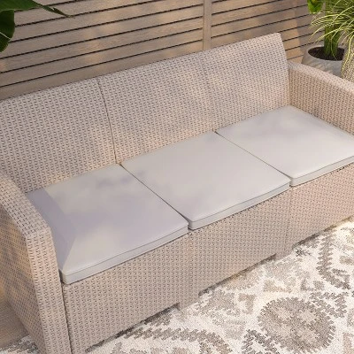 Well composed with modern materials and classic design, this 3-seater sofa is ideal for relaxed settings in the 21st century. The contemporary faux rattan resin frame is complimented by a traditional wicker pattern, giving this sofa a vintage look with present day functionality. Crafted for all-weather use 365 days a year, the cushion covers are removable for convenient cleaning so you can keep your chill space looking cool. This outdoor sofa is chic enough for the indoors, or wherever you want to establish an easy going vibe.