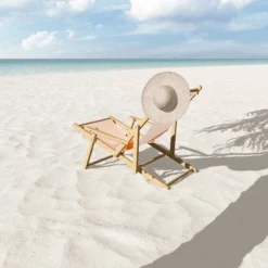 Costway Foldable Wood Beach Sling Chair 3-Position Adjustable Beech Chair W/Free Cushion