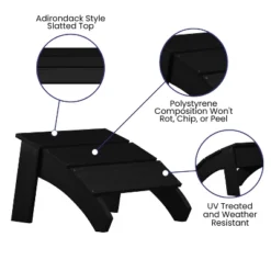 Flash Furniture Sawyer Modern All-Weather Poly Resin Wood Adirondack Ottoman Foot Rest