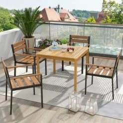 Costway Patio Dining Table Acacia Wood Square Outdoor Bistro With 1.9” Umbrella Hole Yard