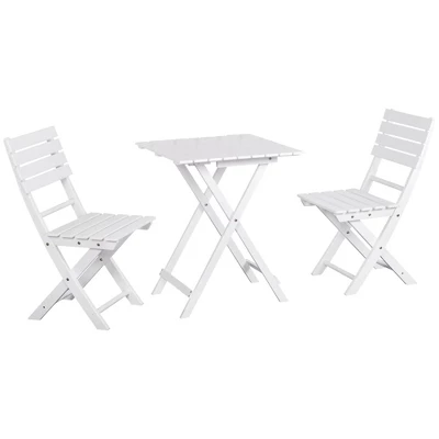 Enjoy the simple things in life this summer with Outsunnny. Our three-piece patio bistro set brings quick dinner seating and adorable minimalism to your backyard. A small set that’s versatile; both the table and chairs fold. Invite a friend over for afternoon tea or bring it with you on the road and enjoy a spot to sit while you’re at the beach. They’re made of natural pinewood and painted to make a water-safe surface. Get out, get comfortable, get Outsunny.
