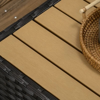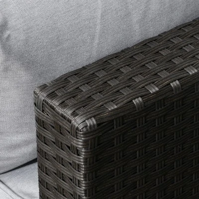 This seven-piece rattan sectional set brings the comforts of your living room to your backyard. Everything is there: two corner sofa sections, four stand-alone couch sections, and a coffee table. Enjoy perks like low-down seating and thickly padded cushions in the great outdoors. Our PE rattan is woven by hand for a classic look. Easy to rearrange with an aluminum frame and capable of customizing to your occasion, it offers a versatile seating solution for six. Get out, get comfy, get Outsunny.