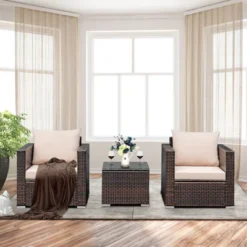Costway 3PCS Patio Rattan Bistro Furniture Set Cushioned Sofa Chair Coffee Table Garden