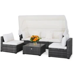 Costway 6-Piece Outdoor Patio Furniture Set Retractable Canopy Conversation Set