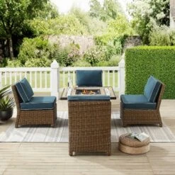 Biscayne 5pc Outdoor Wicker Conversation Set With 4 Armless Chairs & Fire Pit – White – Crosley