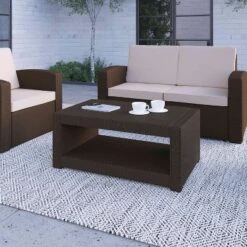 Merrick Lane All-Weather Poly Resin Wood Adirondack Style Deep Seat Patio Loveseat With Cushions
