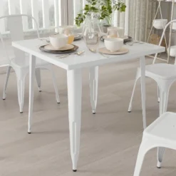 Merrick Lane Outdoor Dining Set With 24″ Round Table And Slatted Back Bar Stools With Footrests