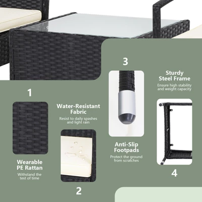 - 【Perfect Choice for Outdoor】 The rattan furniture set which consists of 2 sofas and 1 coffee table is the ideal solution for 2 people to have a talk. It has a wide range of USES, not only for people to have conversations, but also to serve you when you want to entertain your friends. Lightweight design makes it easy for you to move the rattan set from patio to garden.