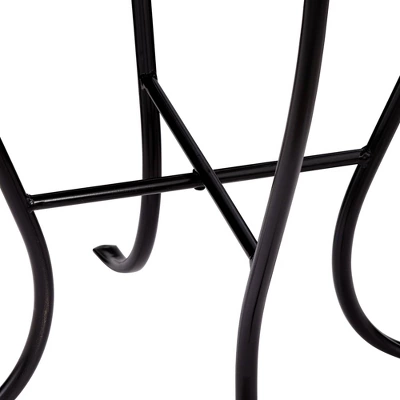 This round outdoor accent table features an inlaid tile top featuring a charming pineapple design against a beige background. The frame and curvaceous legs are constructed of black finish iron that will withstand the elements. From the Teal Island Designs brand, this table is a great way to add fresh style and function to a porch or deck.