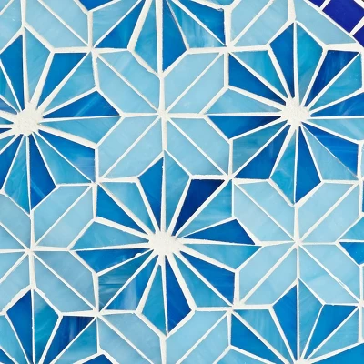 - Blue stars mosaic tile table top. An ideal size to hold refreshments or drinks.